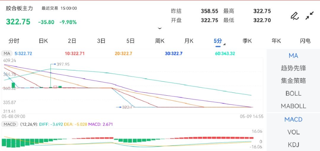 - 5月10日午盘:胶合板主力再跌停 集运指数继续暴涨